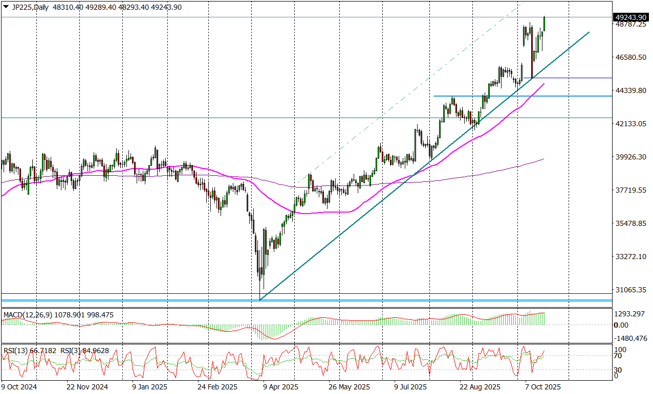 Już jutro Sanae Takaichi prawdopodobnie zostanie pierwszą kobietą, która stanie na czele rządu Japonii. Z punktu widzenia rynków znaczenie ma natomiast to, że Takaichi jest zwolenniczką luźnej polityki fiskalnej i monetarnej. To właśnie był czynnik, który dziś wywindował indeks Nikkei na nowe historyczne szczyty.